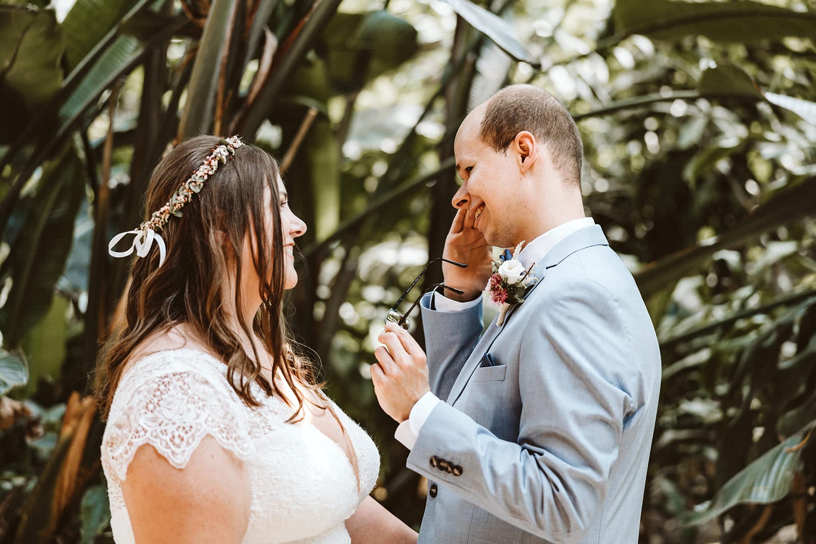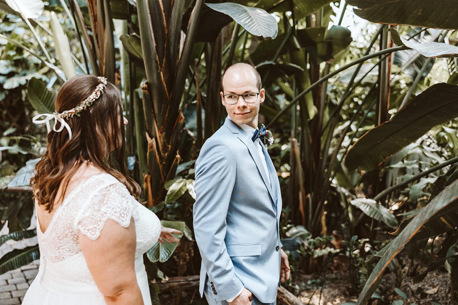 Die schöne, tropische Landschaft in der ZOOM Erlebniswelt bot sich direkt für den First Look an. Eine sehr dankbare Location für mich als Hochzeitsfotograf, da das Tropenhaus zu jederzeit Trocken und gut klimatisiert ist. Die Fotos versprühen sehr viel Liebe, Emotionen und das ein oder andere Tränchen - auch wenn der Bräutigam mir im Nachhinein erzählen wollte, dass er "Tropensand" in seine Augen bekommen habe ;-).
