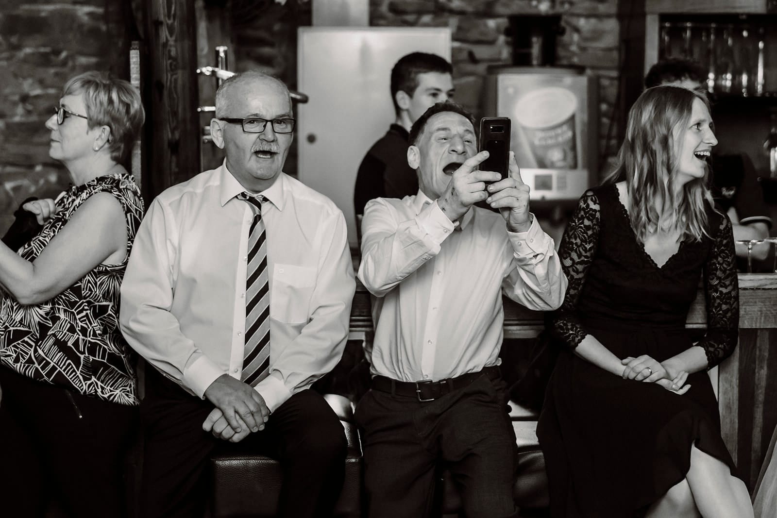 Der Empfang fand im festlich geschmückten Saal des Landhaus Grum in Hattingen statt, einem Raum mit hohen, weißen Decken, ideal für die Arbeit mit Blitzlicht.