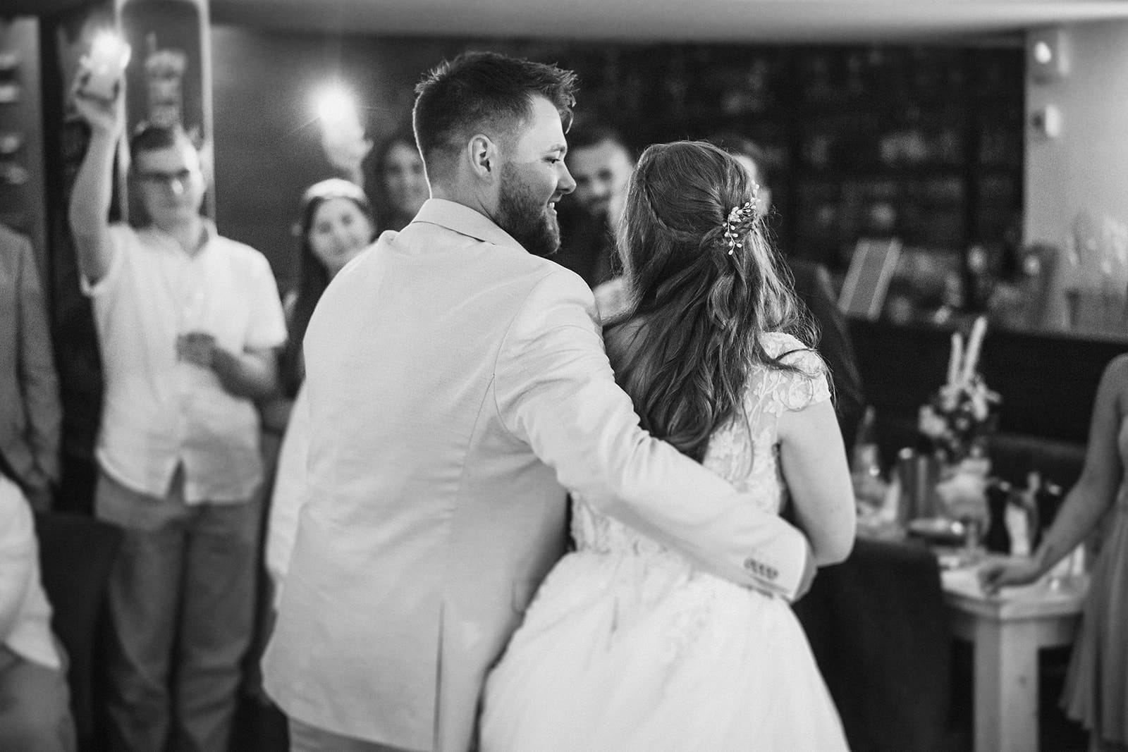 Die Feier fand direkt im Trüffelschwein statt. Die Stimmung war sehr locker. Kein Wunder, bei so vielen tanzwütigen Hochzeitsgästen. Bis spät in die Nacht wurde das Brautpaar gefeiert – und auch der Hochzeitstanz war mit seinen Wunderkerzen sehr romantisch angehaucht.