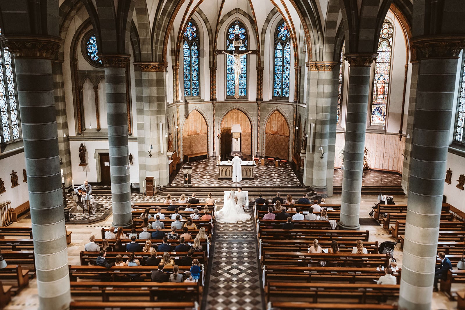 Die prunkvolle Trauung erfolgte in der katholischen St. Lambertus Kirche in Mettmann, einer bildschönen und fotogenen Kirche, die viel Raum für unterschiedliche Aufnahmen bot.