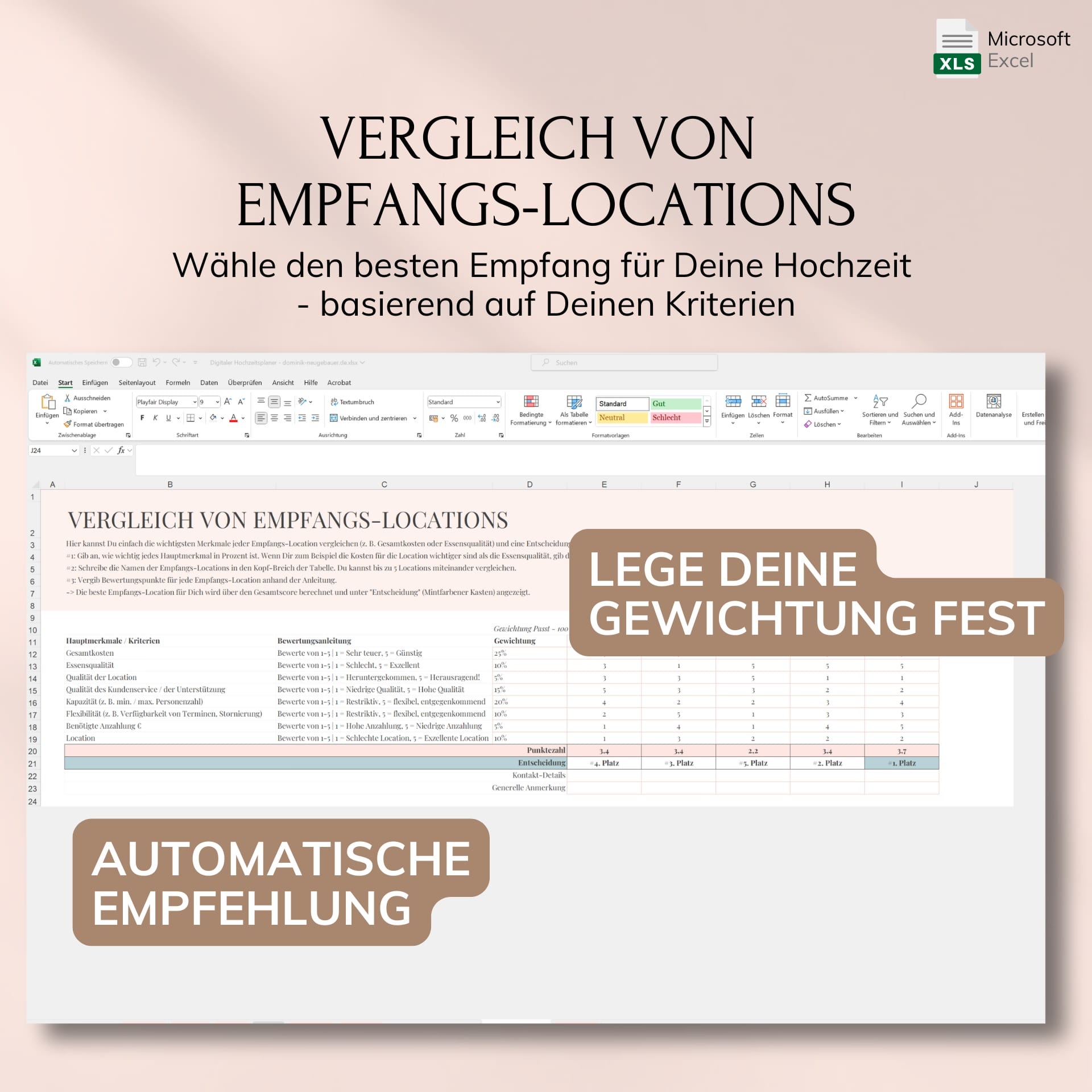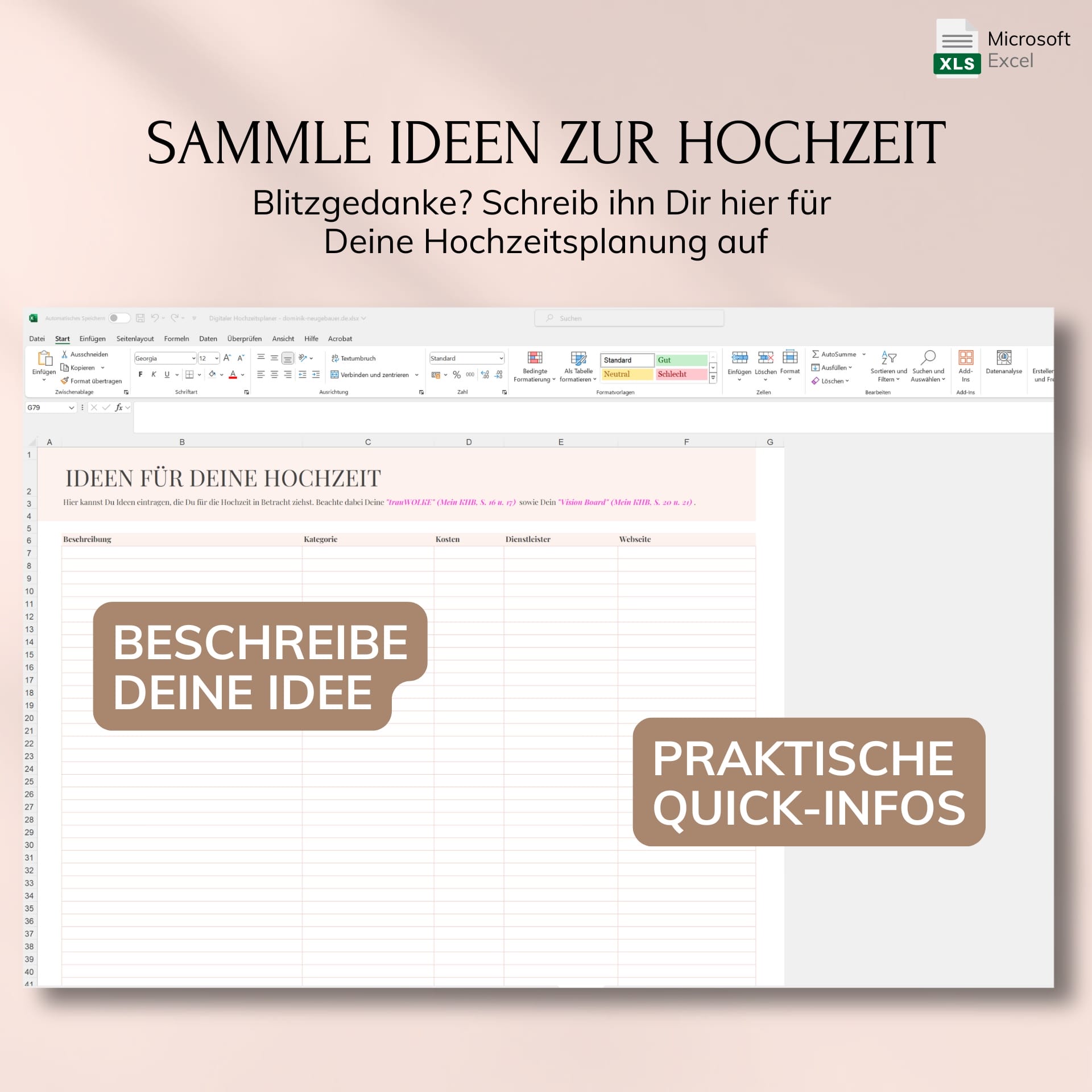 Digitaler Hochzeitsplaner – Excel
