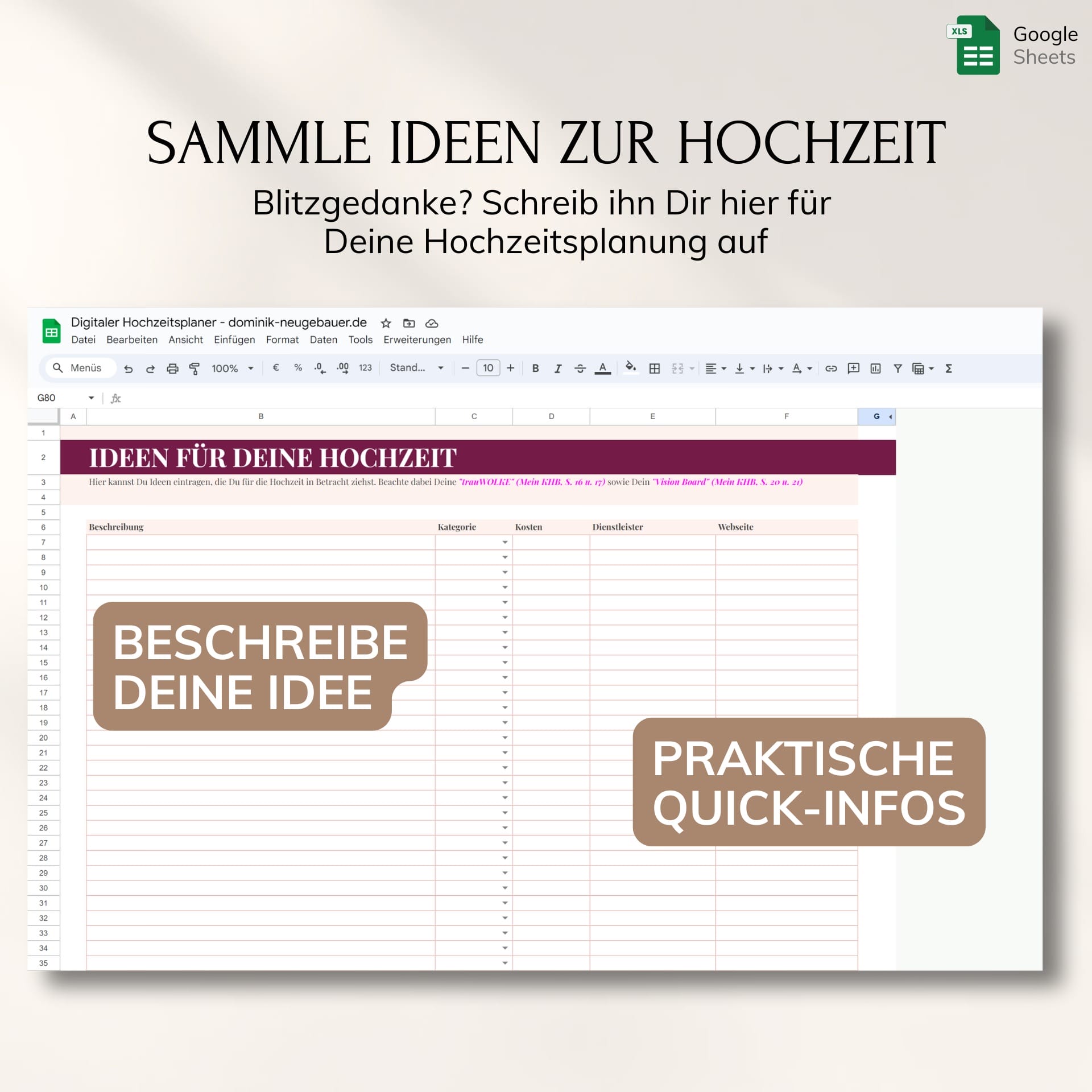 Digitaler Hochzeitsplaner - Microsoft Excel